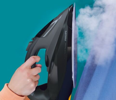 Gdy temperatura żelazka spada, następuje automatyczne odcięcie dopływu wody. Zapobiega to skraplaniu, a także pojawianiu się plam na prasowanych tkaninach.