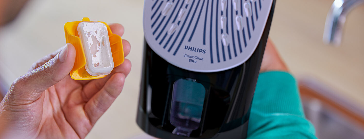 Dzięki wyjmowanemu pojemnikowi, w którym gromadzone są cząsteczki kamienia, czyszczenie żelazka jest bardzo wygodne. Dzięki takiemu rozwiązaniu żelazko Philips Azur na dłużej zachowuje doskonałą wydajność, a Ty przez lata możesz cieszyć się dobrym stanem urządzenia.