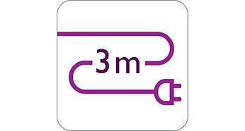 Wyjątkowo długi przewód (3 m) zapewnia duże pole manewru Wyjątkowo długi, trzymetrowy przewód żelazka firmy Philips umożliwia swobodne manewrowanie żelazkiem po całej powierzchni deski do prasowania, a nawet jeszcze dalej. |