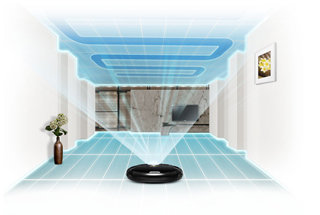 Wirtualny strażnik Funkcja VirtualGuard™ zapobiega wtargnięciu NaviBota-S do obszaru z cennymi przedmiotami – np. tam, gdzie raczkuje dziecko, gdzie znajduje się miska z wodą dla psa lub gdzie na niskim stoliku stoi zabytkowy wazon. Jedno naciśnięcie przycisku aktywuje wirtualną przegrodę, której NaviBot-S nie będzie przekraczać, chroniąc przestrzeń wewnątrz. |