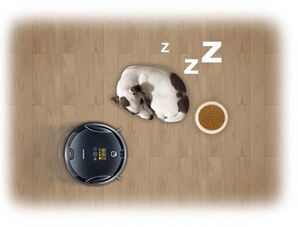 | Virtual Guard™ Funkcja VirtualGuard™ zapobiega wtargnięciu odkurzacza NaviBot Corner Clean do obszaru z cennymi przedmiotami – np. tam, gdzie raczkuje dziecko, gdzie znajduje się miska z wodą dla psa lub gdzie na niskim stoliku stoi zabytkowy wazon. Jedno naciśnięcie przycisku aktywuje wirtualną przegrodę, której NaviBot Corner Clean nie będzie przekraczać, chroniąc przestrzeń wewnątrz. |