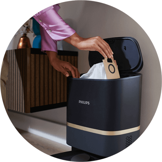 Ciesz się najlepszą wydajnością sprzątania dzięki mocy 5000 Pa. Zapomnij o okruchach, sierści czy większych cząsteczkach brudu. Robot sprzątający Philips Aqua 7000 poradzi sobie z nimi za Ciebie.
