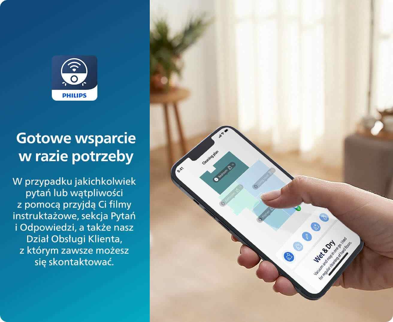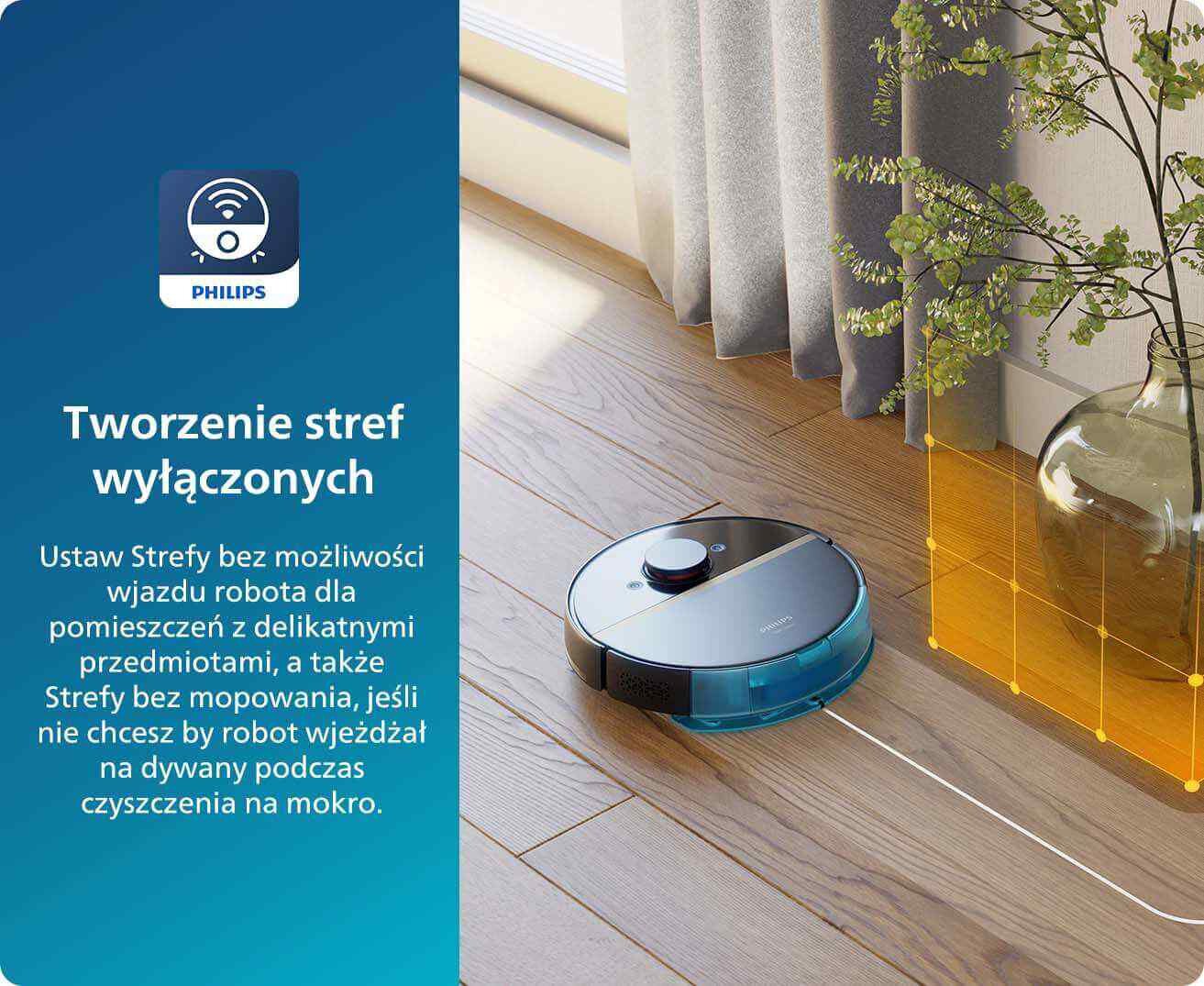 Philips Aqua 7000 rozpoznaje obiekty takie jak buty, zabawki czy inne niewielkie przedmioty leżące na podłodze. Potrafi je precyzyjnie omijać i dokładnie sprzątać obszar wokół nich.