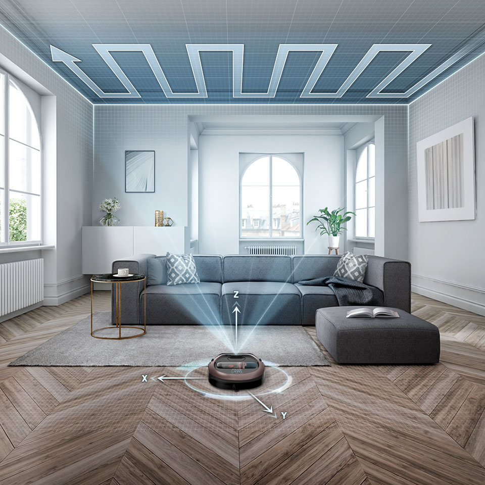 Dzięki wbudowanym czujnikom i kamerze cyfrowej potrafi stworzyć mapę domu. System Visionary Mapping™ zapamiętuje mapę pomieszczeń i wytycza najszybszą oraz najefektywniejszą ścieżkę sprzątania.