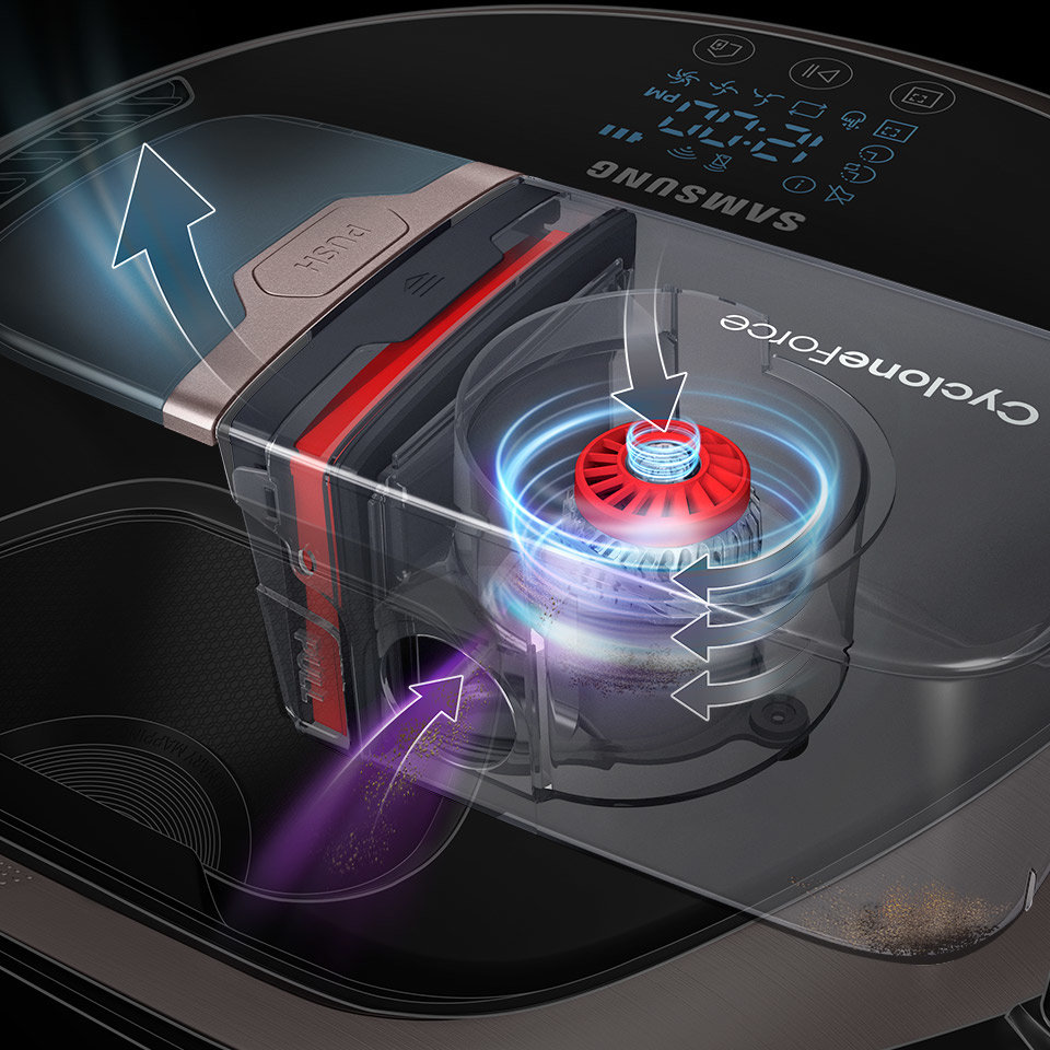 * Przeprowadzone wewnętrzne testy porównawcze na modelach Samsung POWERbot™ VR7000 i Samsung conventional VR10F71UCA.