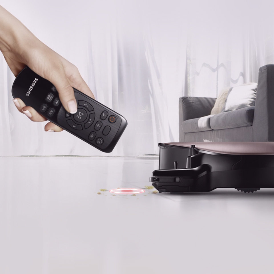 Point Cleaning™umożliwia precyzyjne sterowanie odkurzaczem za pomocą pilota. Umieszczony w nim wskaźnik wyświetla na powierzchni podłogi czerwony punkt, za którym podąży odkurzacz i posprząta.