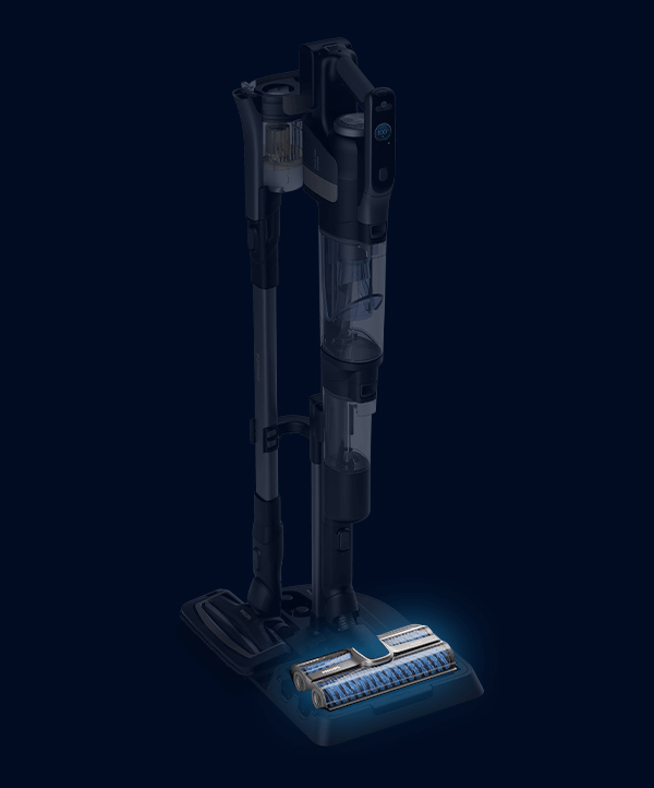 3w1 Jedyne na rynku rozwiązanie, które łączy w sobie 3 urządzenia: bezprzewodowy odkurzacz z funkcją aktywnego mycia, bezprzewodowy odkurzacz z nasadką z podświetleniem LED i odłączany odkurzacz ręczny.