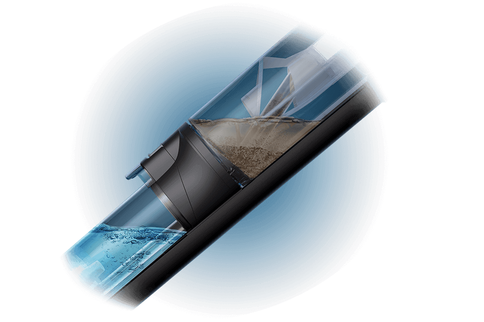Cały zebrany mokry i suchy brud jest zasysany do systemu Aqua Diffusion i szczelnie zamykany w specjalnym zbiorniku.