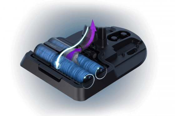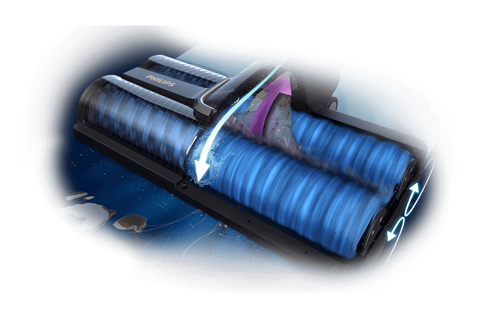 dwie ultramiękkie szczotki PowerBrush z mikrofibry obracają się w przeciwnych kierunkach z prędkością aż 4500 obrotów na minutę, dzięki czemu brud na nich nie osiada i jest zasysany bezpośrednio do urządzenia.