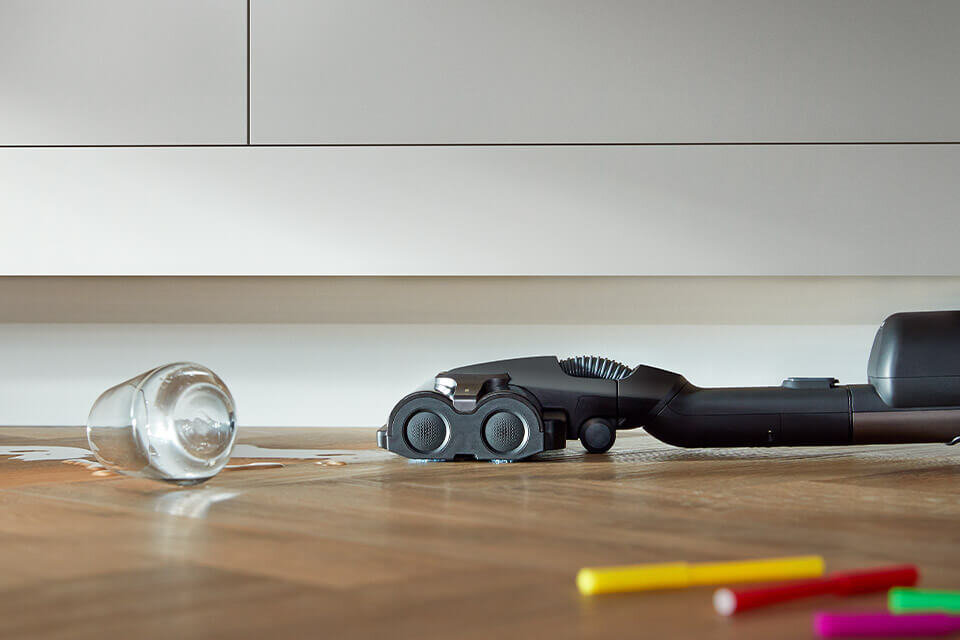 Nasadką sięgniesz pod niskie meble, a wąska obudowa pozwala umyć podłogę przy samej ścianie (od 6 mm po obu stronach). Wyjątkowa skrętność odkurzacza umożliwia manewrowanie w trudno dostępnych miejscach np. pomiędzy krzesłami.