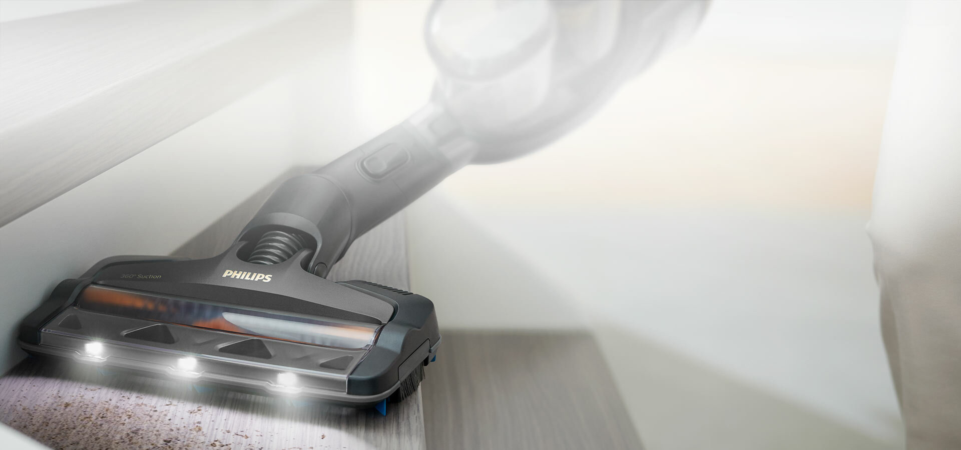 Teraz nie przeoczysz żadnego okruszka. W nasadce zamontowano oświetlenie LED, więc widać wszystko, co jest na podłodze.