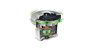 Wydajny energetycznie silnik o dużej mocy Silnik o wysokiej wydajności zoptymalizowano tak, aby zużywał mniej energii, a jednocześnie zapewniał większą moc ssania. |