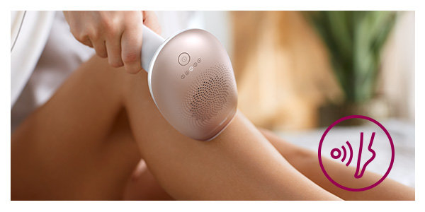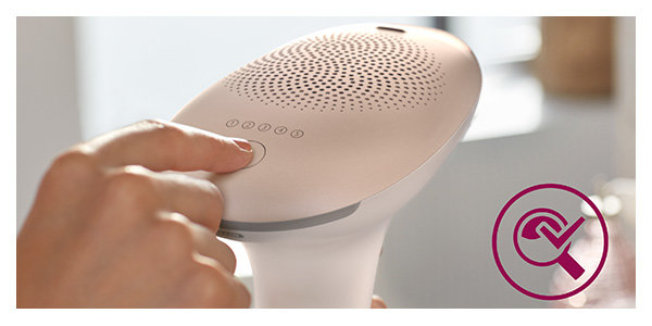 Wbudowany czujnik odcienia skóry zapewnia dodatkową ochronę. W celu zapewnienia większego bezpieczeństwa wbudowany czujnik odcienia skóry określa karnację skóry na początku każdej sesji i od czasu do czasu podczas sesji. Wykrycie zbyt ciemnego odcienia skóry spowoduje automatyczne zatrzymanie emitowania impulsów.