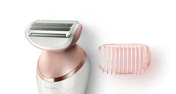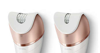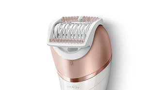 Nasadki do twarzy i miejsc wrażliwych umożliwiają usunięcie niechcianego owłosienia Łagodniejszą depilację różnych obszarów ciała zapewnia nasadka do twarzy, która usuwa niechciane owłosienie, oraz nasadka do miejsc wrażliwych, która usuwa włosy pod pachami i w okolicy bikini. |