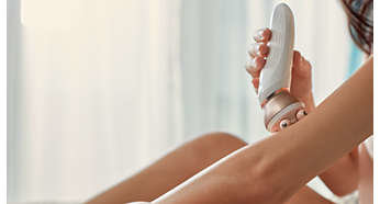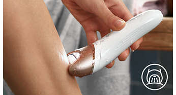 Pierwszy depilator z ergonomicznym, zakrzywionym uchwytem Ergonomiczny, zakrzywiony uchwyt umożliwia łatwe manewrowanie, zapewniając pełną kontrolę i większy zasięg. Możesz w naturalny i precyzyjny sposób przesuwać urządzenie po całym ciele. |