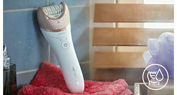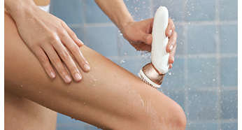Można używać na sucho i na mokro, pod prysznicem lub w wannie Dzięki specjalnemu uchwytowi antypoślizgowemu urządzenia można używać w optymalny sposób na sucho i na mokro — podczas codziennej kąpieli pod prysznicem lub w wannie. |
