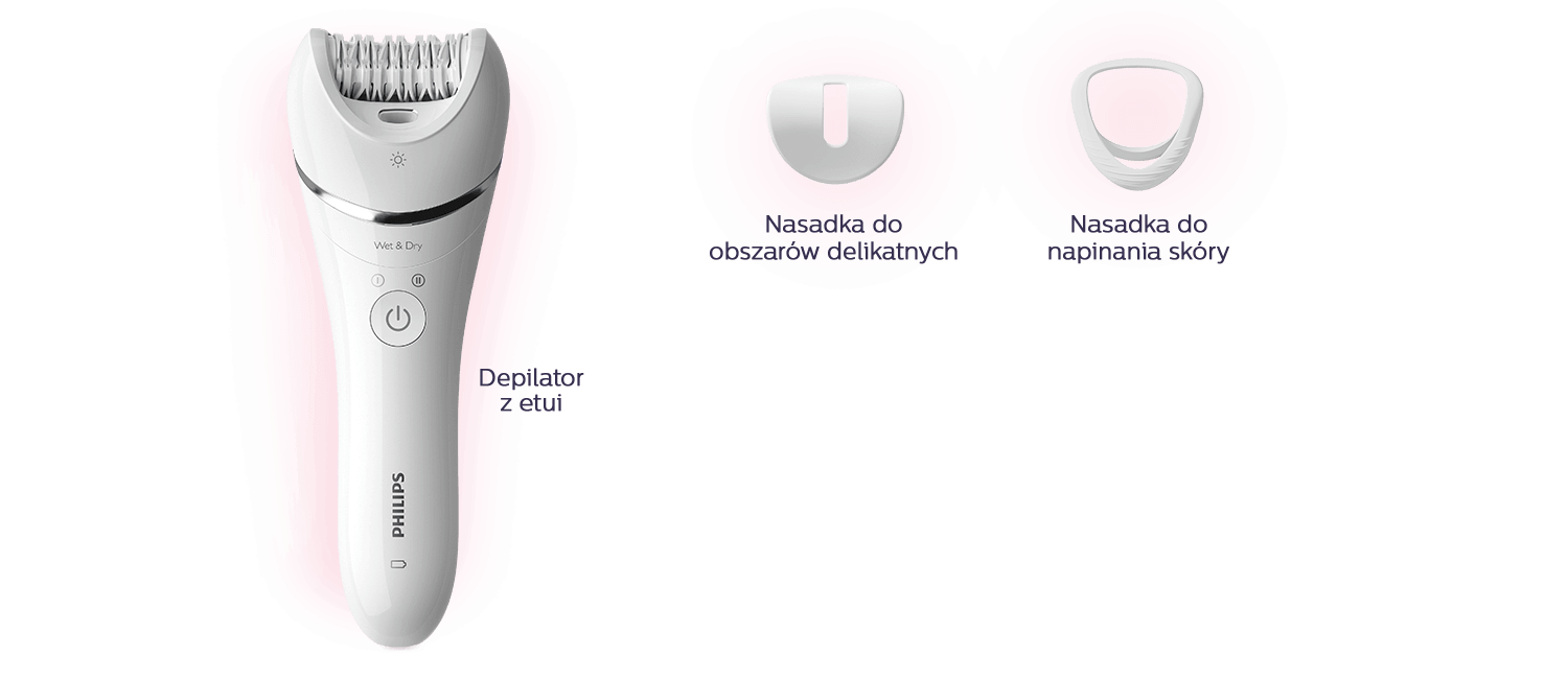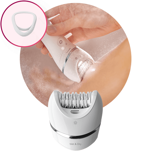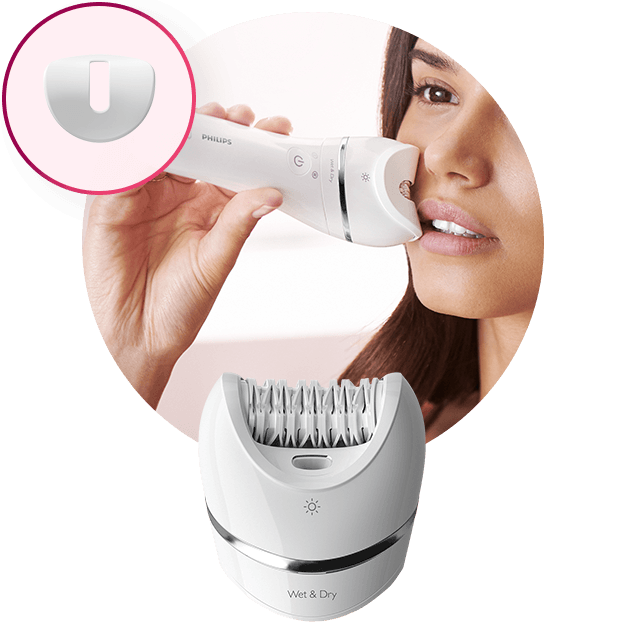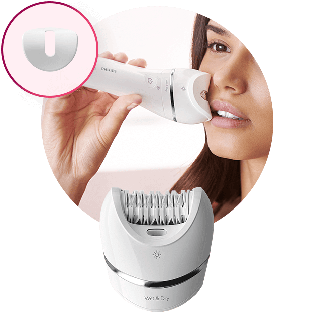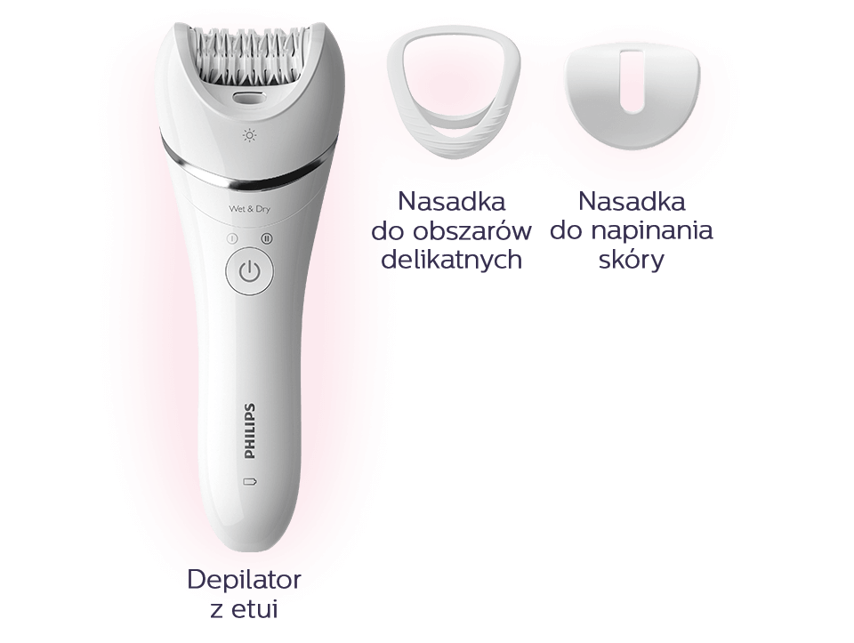 Opcjonalna optymalna nasadka łatwą i niezwykle komfortową depilację. Została zaprojektowana tak, aby ograniczyć ciągnięcie i dyskomfort –urządzenie delikatnie napina skórę na depilowanym obszarze, więc Ty nie musisz tego robić samodzielnie.