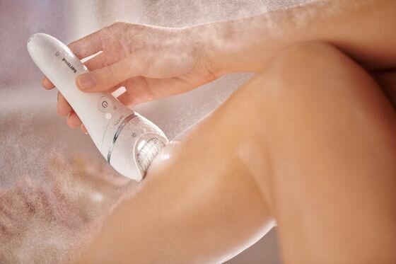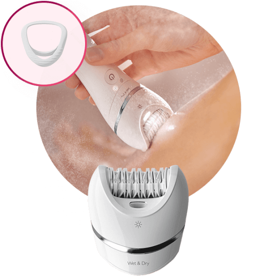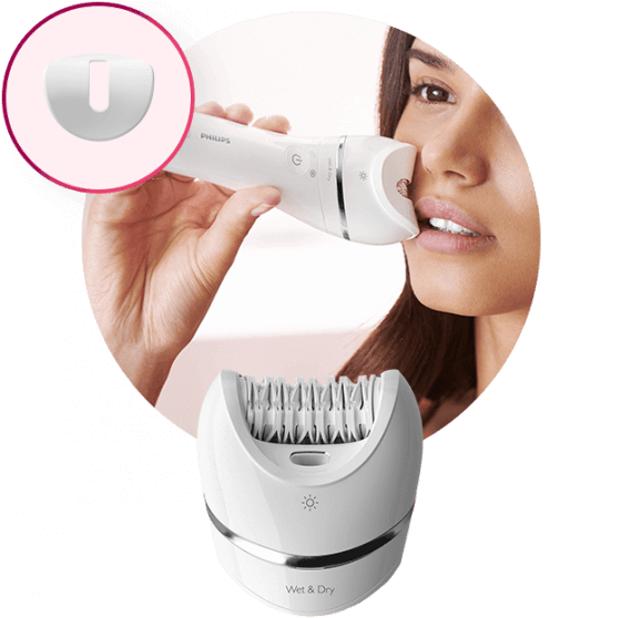 W kilka chwil będziesz mogła cieszyć się gładką i zadbaną skórą nóg bez podrażnień. Skorzystaj z dodatkowych akcesoriów, by zapewnić skórze doskonałą pielęgnację i dołącz do ponad 85% kobiet1 zadowolonych z działania depilatora Philips.