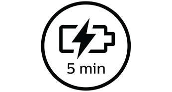 | Szybkie ładowanie w ciągu 5 min Szybkie ładowanie w ciągu 5 min umożliwia pojedyncze golenie. |