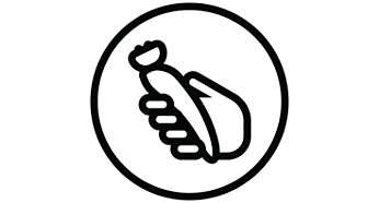 Ergonomiczny uchwyt umożliwia wygodne golenie Ergonomiczny, zakrzywiony uchwyt umożliwia łatwe manewrowanie, zapewniając pełną kontrolę i większy zasięg. Możesz w naturalny i precyzyjny sposób przesuwać urządzenie po całym ciele. |