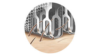 | Elastyczna głowica z podwójną siateczką — mniej pominiętych włosków Kiedy przesuwasz golarkę po skórze, elastyczna głowica z ruchomą siateczką i zginającą się szyjką dostosowuje się dynamicznie, tak aby zachować optymalny kontakt ze skórą. Podwójna siateczka daje pewność, że mniej włosków zostanie pominiętych. |