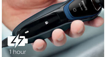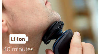 Do 40 minut bezprzewodowego golenia Uzyskasz blisko 40 minut czasu pracy — około 13 cykli golenia — po godzinie ładowania. Możesz także wybrać golenie urządzeniem podłączonym do sieci elektrycznej. |