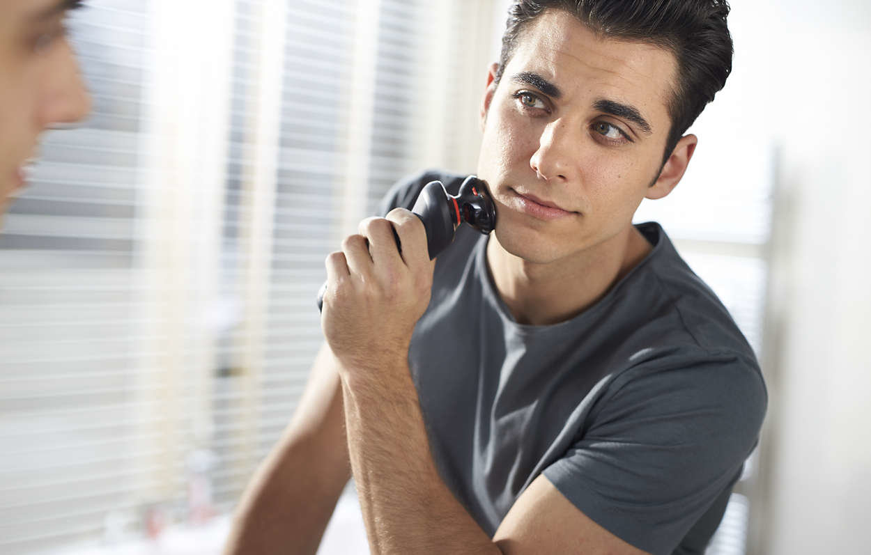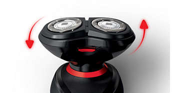 Dokładne i bezpieczne golenie Obrotowa, podwójna nasadka goląca została zaprojektowana, aby zapewnić dokładne i czyste golenie bez zadraśnięć i skaleczeń. Głowice golące poruszają się w 3 kierunkach, dzięki czemu łatwo podążają za krzywiznami twarzy. |