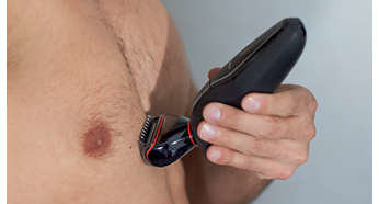 Proste i bezpieczne przycinanie włosów i golenie Zaokrąglone nasadki i opatentowane perłowe ząbki zapobiegają podrażnieniom skóry i umożliwiają łatwe golenie całego ciała. |