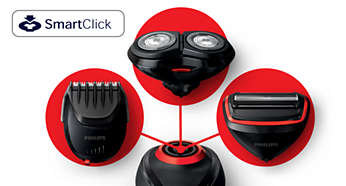 System SmartClick umożliwia łatwą wymianę nasadek System nasadek SmartClick ułatwia przekształcenie urządzenia Click&Style w golarkę, trymer do brody lub golarkę do ciała. Wystarczy przymocować odpowiednią nasadkę do uchwytu, aby uzyskać żądaną konfigurację. |