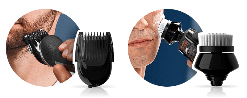 Nawet bardzo długi zarost przytniesz dzięki specjalnej głowicy znajdującej się w zestawie. Zmień swój wygląd dzięki trymerowi do brody SmartClick. Do wyboru jest 5 ustawień długości, pozwalających uzyskać dowolny styl — od idealnego zarostu po krótką, równo przyciętą brodę. Zaokrąglone końcówki i nasadki trymera do brody zostały zaprojektowane, aby zapobiegać podrażnieniom skóry.