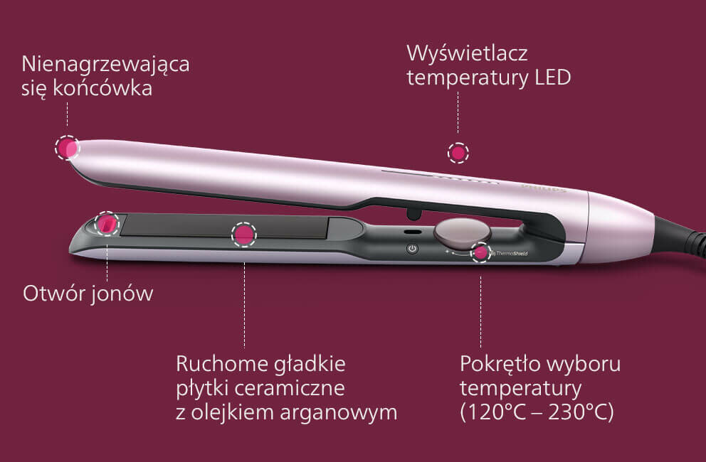 Wybierz jedno z 12 ustawień temperatury od 120°C do 230°C w zależności od efektu, jaki chcesz dzisiaj uzyskać. Temperaturę łatwo sprawdzisz na eleganckim i czytelnym wyświetlaczu LED.
