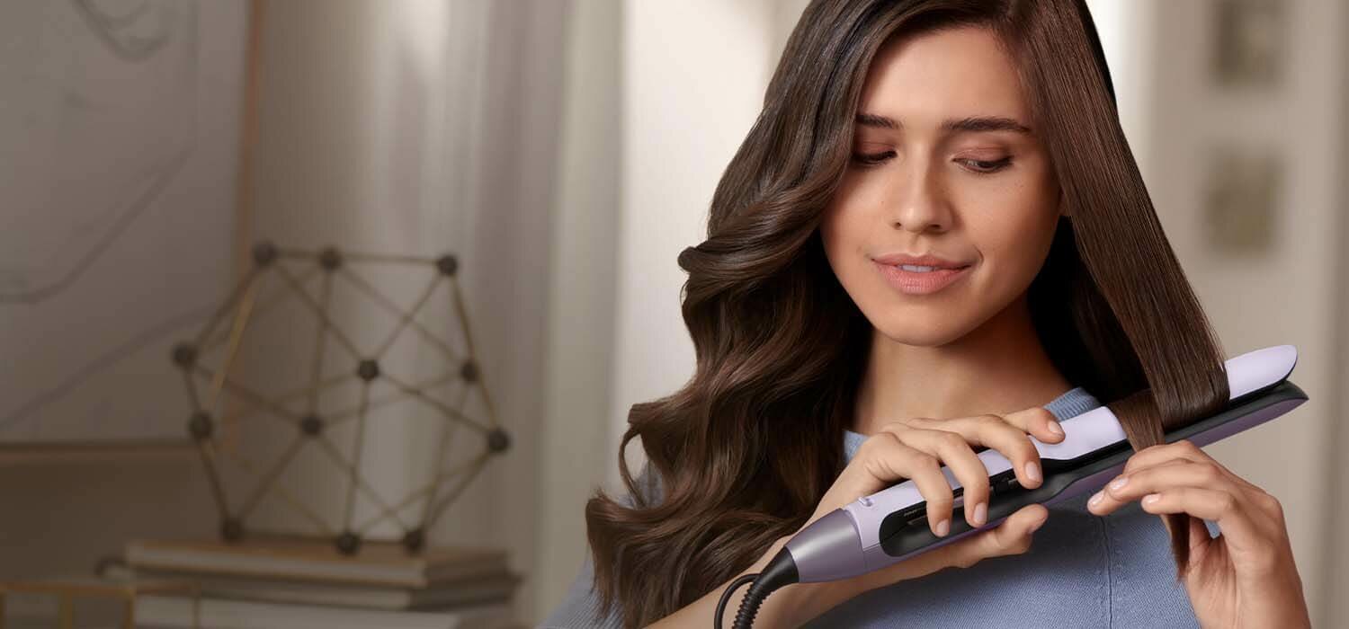 Zadbaj o piękny wygląd swoich włosów każdego dnia. Teraz możesz częściej je stylizować, korzystając z prostownicy Philips seria 5000 ograniczającej uszkodzenia termiczne1.