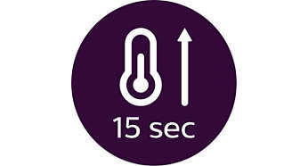 Szybkie nagrzewanie — 15 sek. Prostownica zapewnia krótki czas nagrzewania i jest gotowa do pracy po 15 sekundach. |