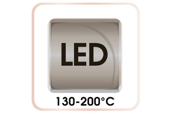 Gotowa do pracy już w 30 sekund. Pozwala na dokładne kontrolowanie temperatury (od 130°C do 200°C). |