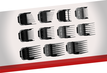 11 grzebieni w zestawie – dla różnych długości cięcia