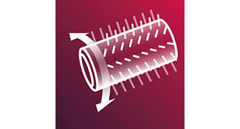 Szczotki mogą obracać się w dwóch kierunkach Szczotka może obracać się w dwóch kierunkach, dzięki czemu łatwo się z niej korzysta i można ją wykorzystywać do tworzenia różnych fryzur. |