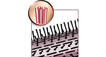 Szczotka 50 mm zapewniająca gładsze i bardziej lśniące włosy Włosie termoszczotki jest częściowo wykonane z naturalnej szczeciny. Mieszane włosie płynniej przesuwa się po włosach, zapobiegając ich elektryzowaniu się i plątaniu, oraz sprawia, że włosy są bardziej lśniące. |