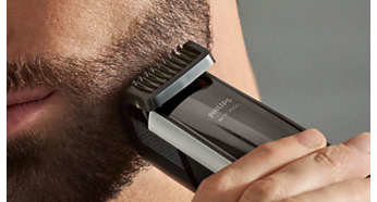 Trymer do modelowania umożliwia wykończenie stylizacji i uzyskanie perfekcyjnych krawędzi Dokończ swoją stylizację. Użyj trymera do modelowania, aby nadać krawędziom zarostu precyzyjny kształt i dopracować detale. |