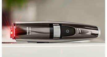 Zadbaj o swój zarost z pomocą naszego wyjątkowego systemu z prowadnicą laserową. Czerwona linia prowadząca umożliwia ostre, symetryczne przycinanie po obu stronach twarzy. |