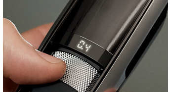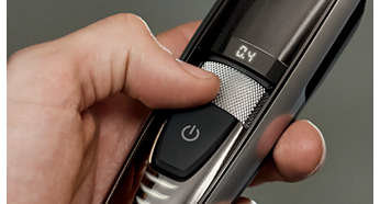 Stopniowe przycinanie co 0,2 mm w zakresie od 0,4 mm do 7 mm Wystylizuj swoją brodę z niezwykłą precyzją dzięki możliwości wyboru długości zarostu z dokładnością do 0,2 mm. Za pomocą kółka ustawień długości wybierz żądaną długość zarostu w zakresie od 0,4 mm do 7 mm. |