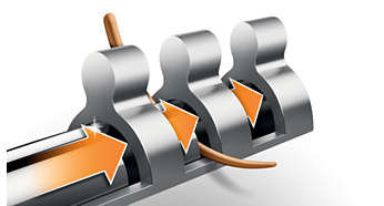 Niezwykle precyzyjne szczeliny umożliwiające ostre cięcie Dzięki niezwykle precyzyjnym szczelinom w nożyku i osłonce włosy usuwane są szybko i efektywnie. |