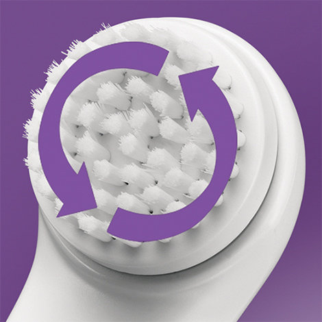 Szczotka złuszczająca gwarantuje komfort golenia i pomaga zapobiegać wrastaniu włosów. Głowica obraca się łagodnie, usuwając martwe komórki i pozostawiając skórę jedwabiście gładką.