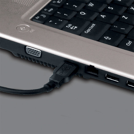 Idealne rozwiązanie, gdy jesteś poza domem: zestaw wyposażono w łącze do ładowania przez USB i micro USB, więc możesz uzupełnić jego baterię przy użyciu swojego laptopa.