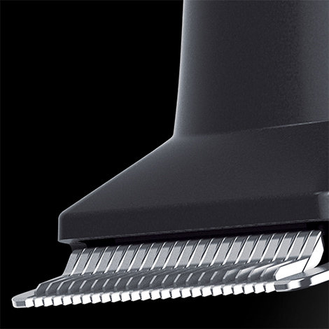 Możesz wybierać spośród pięciu nakładek grzebieniowych o różnych długościach (1,5; 3; 6; 9 i 12 mm), trymera liniowego do nosa i uszu, mini-golarki foliowej, trymera precyzyjnego oraz trymera dwustronnego do ciała. Wszystkie elementy urządzenia mogą być przechowywyane na kompaktowej i eleganckiej podstawce podłączanej do zasilania - tak, abyś zawsze był gotowy do wyjścia.