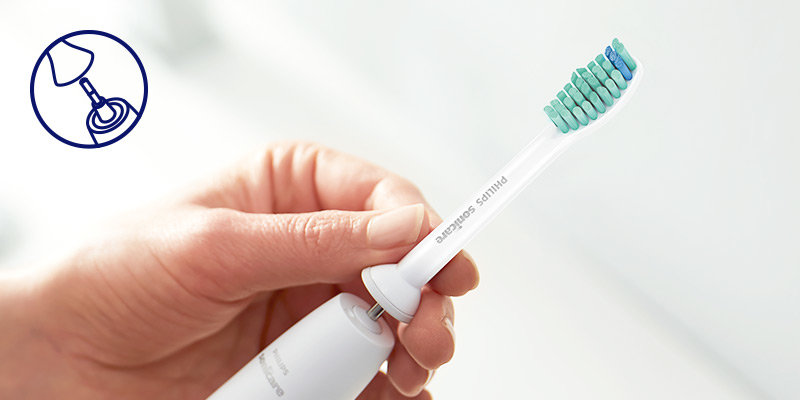 Końcówka ProResults Standard pasuje do wszystkich rączek szczoteczek Philips Sonicare. Mocowanie na kliknięcie ułatwia zakładanie końcówki szczoteczki.