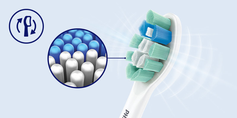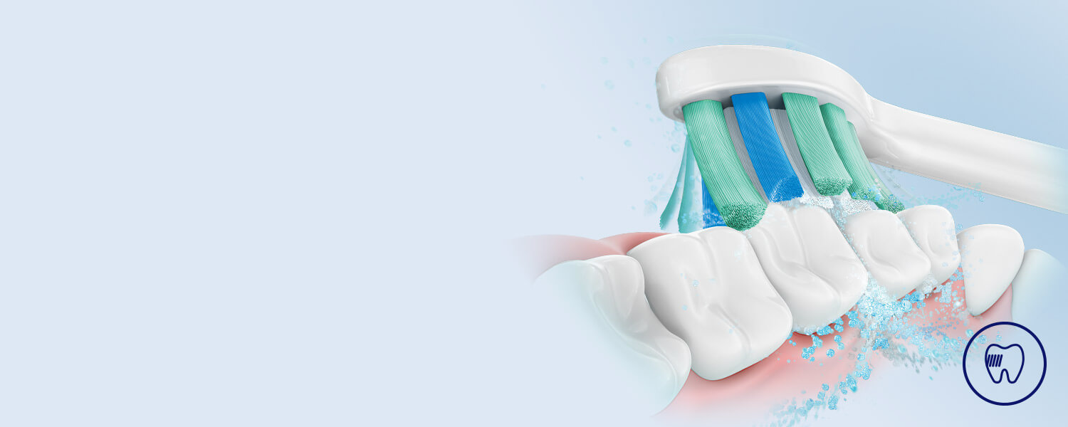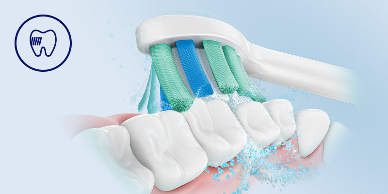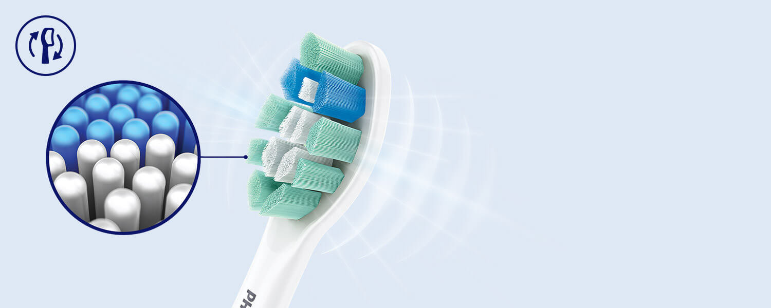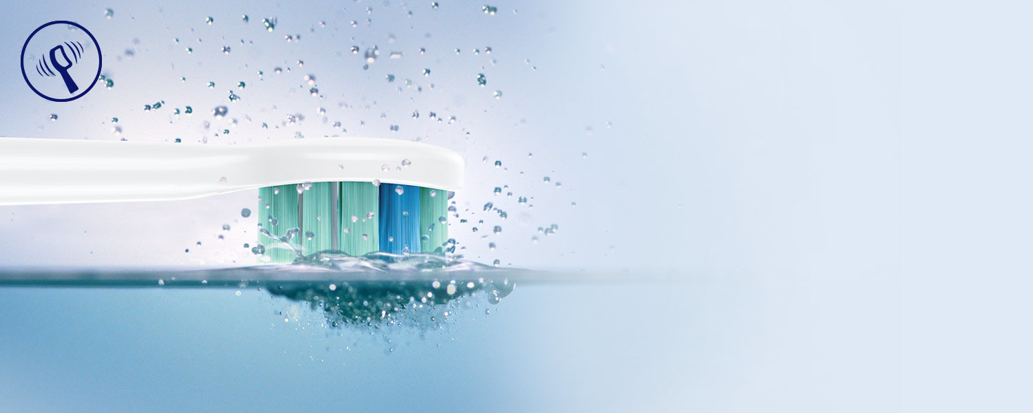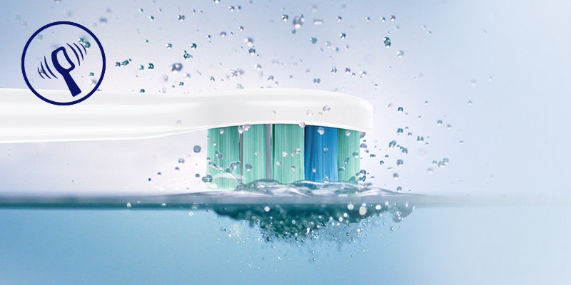 Aż 62 tys. ruchów na minutę nadaje dużą prędkość mieszaninie płynu (pasty i śliny) wytwarzając mikrobąbelki, a następnie szeroki zakres ruchu włosia oryginalnych końcówek Philips Sonicare wtłacza je głęboko w przestrzenie międzyzębowe zapewniając doskonałe czyszczenie.