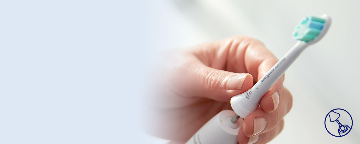 Z funkcją parowania osiągniesz najwyższy możliwy poziom czystości. Wbudowany chip końcówki szczoteczki synchronizuje się z rączką Philips Sonicare*, dzięki czemu szczoteczka wybiera najlepszy program i intensywność szczotkowania.