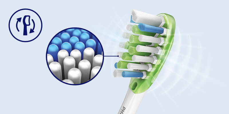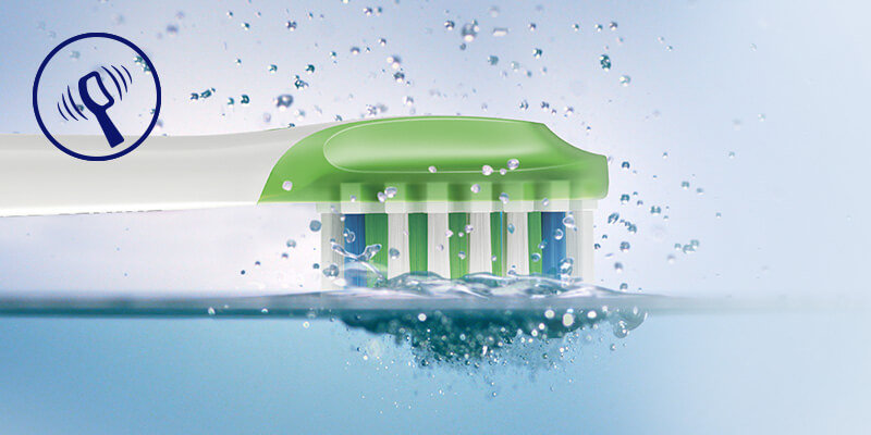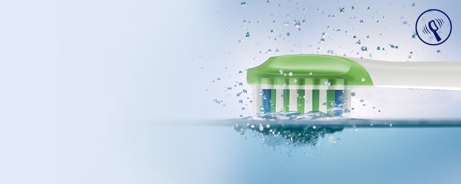 Aż 62 tys. ruchów na minutę nadaje dużą prędkość mieszaninie płynu (pasty i śliny) wytwarzając mikrobąbelki, a następnie szeroki zakres ruchu włosia oryginalnych końcówek Philips Sonicare wtłacza je głęboko w przestrzenie międzyzębowe zapewniając doskonałe czyszczenie.