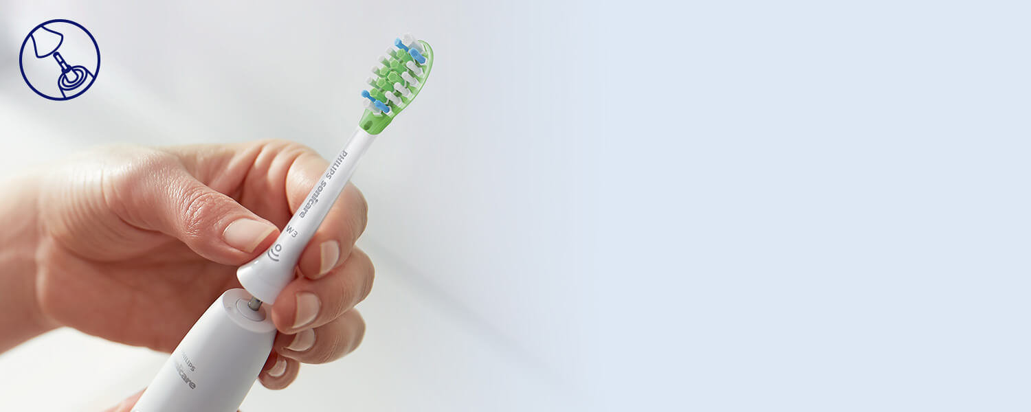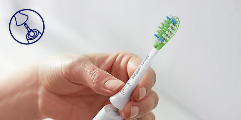 W3 Premium White pasuje do wszystkich rączek szczoteczek Philips Sonicare. Mocowanie na kliknięcie ułatwia zakładanie końcówki szczoteczki.