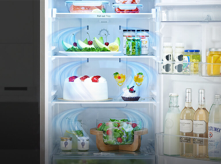 Liczne kanały rozprowadzają chłodne powietrze do każdego zakątka lodówki, gwarantując, że każdy produkt zostanie odpowiednio schłodzony.